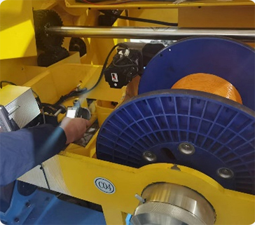 | Trådsamling Ett kraftupptagningssystem av spoltyp används, utrustat med en separat PLC och industriell kontrollpanel. | | |