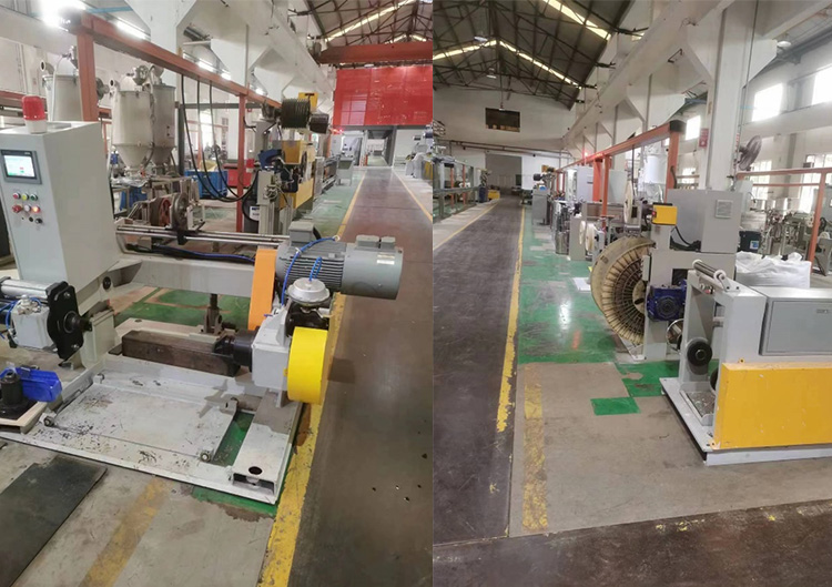 | Extruderingsprocess Rekommenderas: 60 mm 25 mm kärntrådsextruder | Monteringsprocess 1. Enkel vridning rekommenderas: 1000 mm fribärande enkel vridning 2. Kablage rekommenderas: 400mm-500mm burstrandningsmaskin | Extruderingsprocess för yttre mantel Rekommenderas: 70 mm yttre mantel extruder |